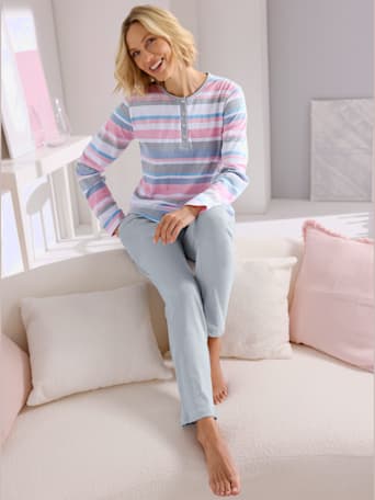 Rien n'est plus décontracté qu'un pyjama. Parfait pour passer du lit au canapé lors d'un dimanche tranquille à la maison, un pyjama pour femme est ce qu'il vous faut pour être bien à l'aise. Chez Witt, nous proposons des hauts duveteux, des pantalons douillets, des ensembles de pyjama en pilou-pilou, bref, tout le confort réuni en une collection, toujours à moindre coût. Pour compléter votre tenue d'intérieur et se sentir bien de la tête aux pieds, vous pouvez aussi parcourir notre collection de pantoufles pour femmes pas chers et nos chaussons.
